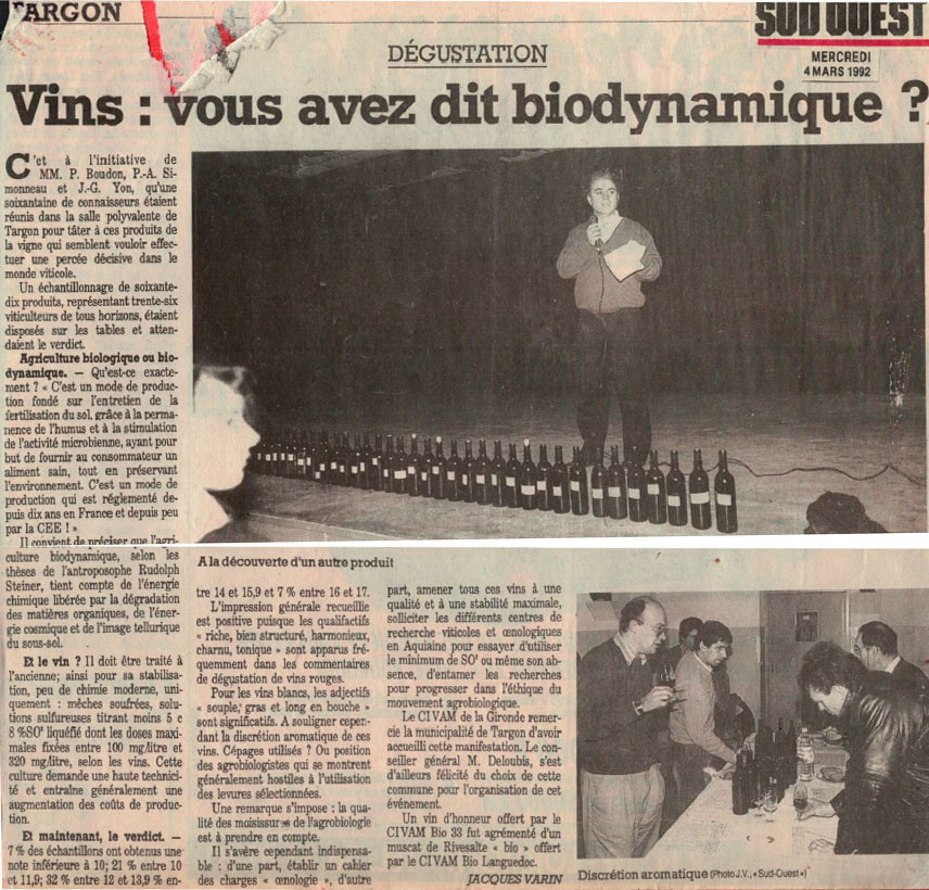 À partir de 1992, le CIVAM met en place une dégustation des vins bio en invitant les professionnels et la presse, pour mettre en avant la qualité des vins biologiques et en finir avec l’adage « c’est bio mais c’est pas bon ».