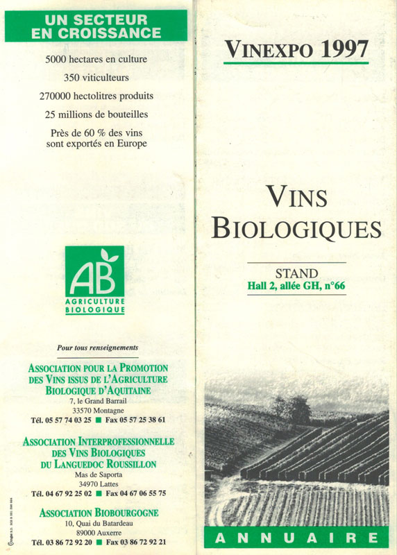 En 1997, cette dégustation devient Expression des Vignerons Bio, un concours formel déposé à la DGCCRF. Ce concours, désormais organisé par le VBNA, prendra chaque année une place plus importante auprès des acheteurs par la qualité de son organisation et la crédibilité des résultats obtenus.