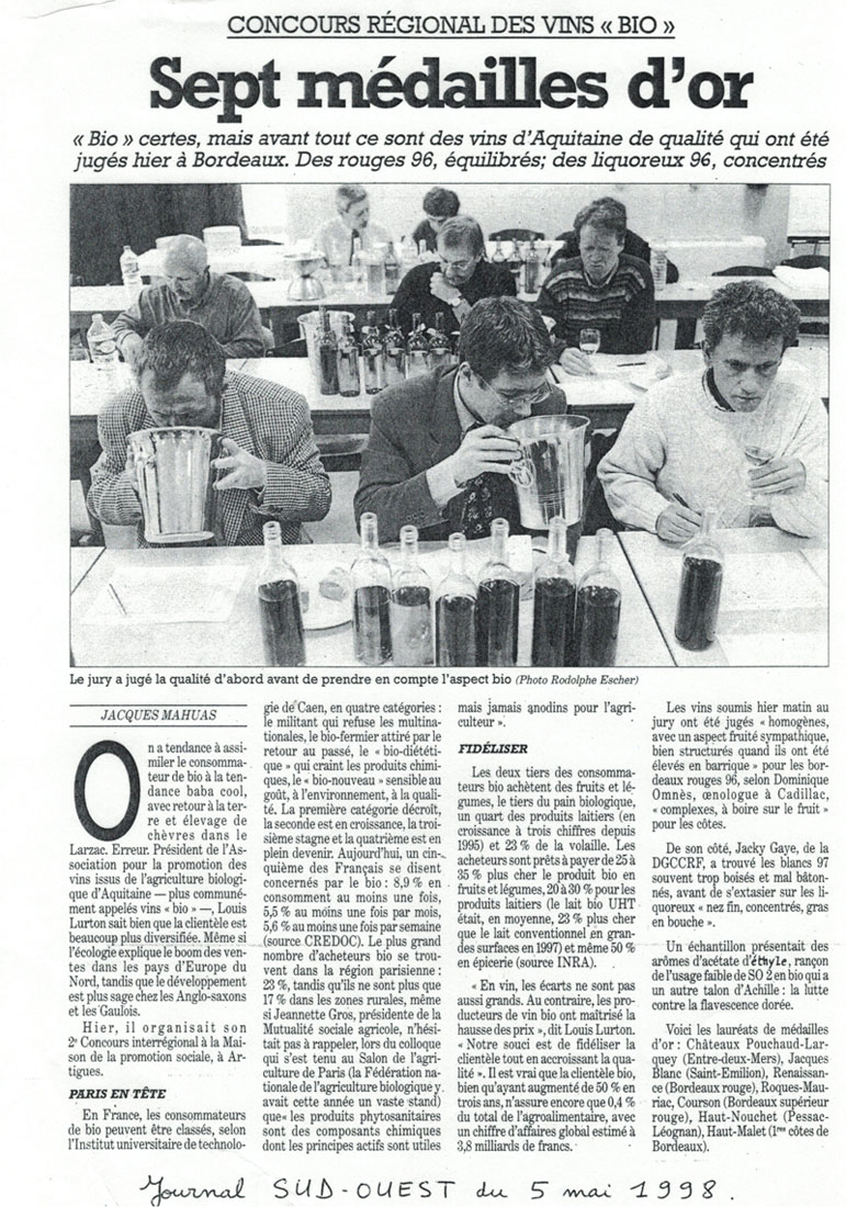 « C’est en 1963 que mon père reconvertit entièrement le vignoble familial à l’Agriculture biologique, renonçant alors à la course à la productivité et à l’utilisation de produits chimiques de synthèse dans les vignes. Cette orientation, très avant-gardiste pour l’époque, lui fut inspirée par une méthode d’agriculture biologique initiée par Raoul Lemaire. Mon père avait en effet la certitude que le mode de production intensif et ses pratiques polluantes allaient dégrader l’expression de nos terroirs, et auraient de graves conséquences, tels : la disparition progressive de certaines espèces animales et végétales, et la pression des ravageurs causée par le déséquilibre des écosystèmes.
